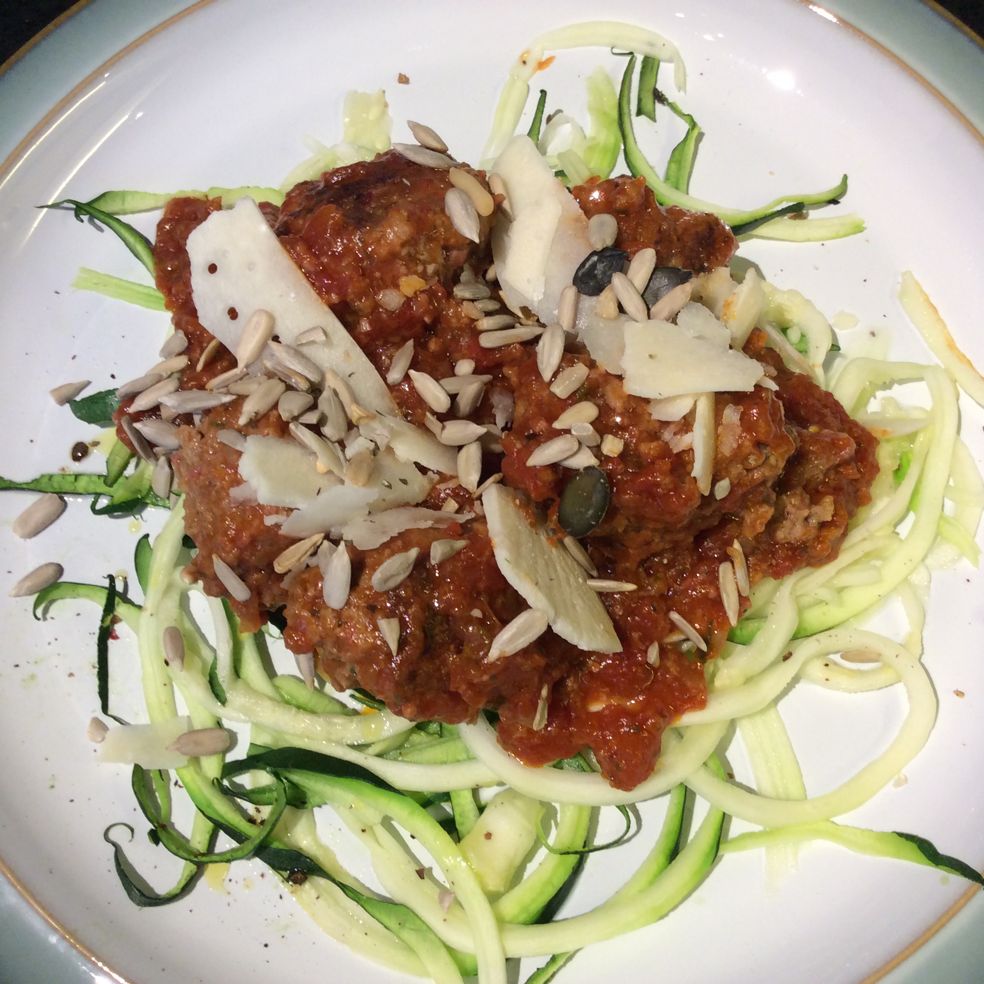 Tasty meatballs with either courgettini or spaghetti.